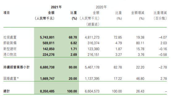 光大環(huán)境為中國光大集團股份公司骨干企業(yè),香港聯(lián)交所主板上市公司。2003年轉型環(huán)境領域以來,光大環(huán)境已逐步成長為中國最大環(huán)境企業(yè)、亞洲環(huán)保領軍企業(yè)、全球最大垃圾發(fā)電投資運營商及世界知名環(huán)境集團。年報披露,2021年,光大環(huán)境新突破了新疆固廢處理市場,天津市、河北省及毛里求斯的水務市場,中國香港光伏發(fā)電市場,以及江蘇常州市、蘇州市吳江區(qū)垃圾分類市場等。2021年,光大環(huán)境共簽署69個新項目(包括收購項目)以及2份現(xiàn)有項目的補充協(xié)議,總投資約人民幣132.48億元,涉及垃圾發(fā)電、餐廚及廚余垃圾處理、垃圾分類、光伏發(fā)電、水處理等;承接2個垃圾分類服務、6個環(huán)境修復服務、8個EPC項目、2個EMC項目、1個委托運營項目,以及1個設備供貨服務,合同總金額約人民幣3.31億元。