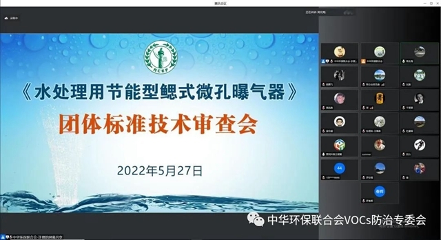 2022年5月27日,中華環(huán)保聯(lián)合會(huì)組織的《水處理用節(jié)能型鰓式微孔曝氣器》團(tuán)體標(biāo)準(zhǔn)(初稿)技術(shù)審查會(huì)以視頻會(huì)議形式順利召開(kāi)。該標(biāo)準(zhǔn)通過(guò)技術(shù)審查,審查組由五位專(zhuān)家組成。中華環(huán)保聯(lián)合會(huì)秘書(shū)長(zhǎng)助理吳克食參加會(huì)議。