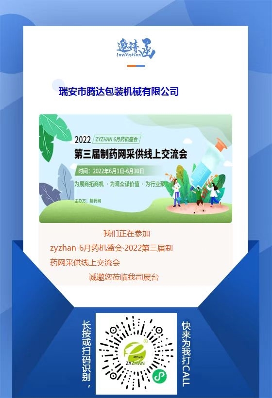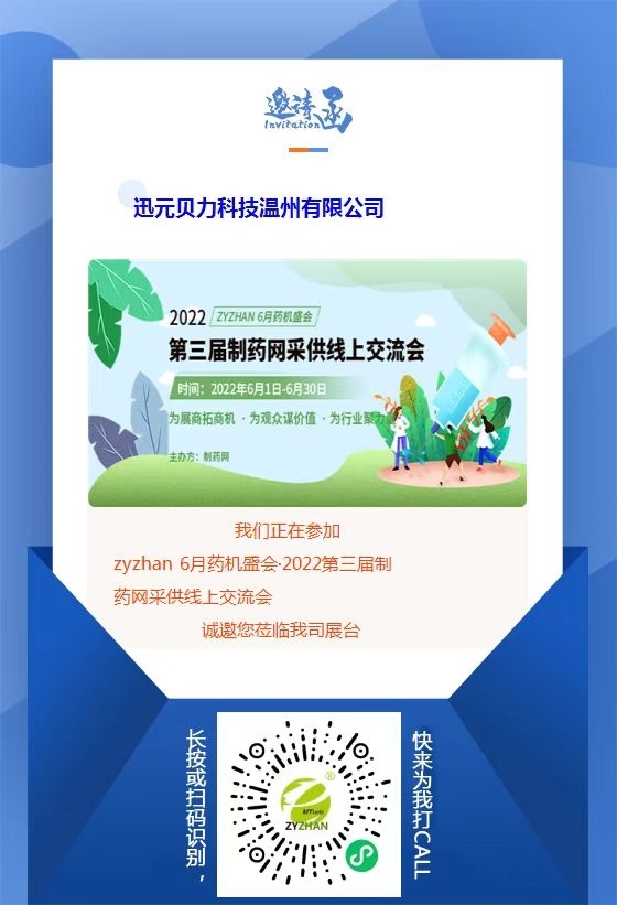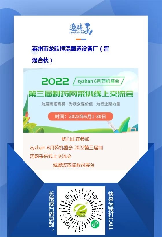 由制藥網(wǎng)主辦的zyzhan 6月藥機(jī)盛會(huì)——2022第三屆制藥網(wǎng)采供線(xiàn)上交流會(huì)(在線(xiàn)展會(huì))(簡(jiǎn)稱(chēng)“zyzhan 6月藥機(jī)盛會(huì)”)即將于2022年6月1日-6月30日舉行。本次盛會(huì)設(shè)原料藥機(jī)械館、制劑機(jī)械館、儀器儀表館、藥品包裝機(jī)館、制藥用水/氣設(shè)備館、通用機(jī)械設(shè)備館、其他制藥設(shè)備館,目前超百家企業(yè)都已入駐相應(yīng)展館,正在等待與您相見(jiàn)!