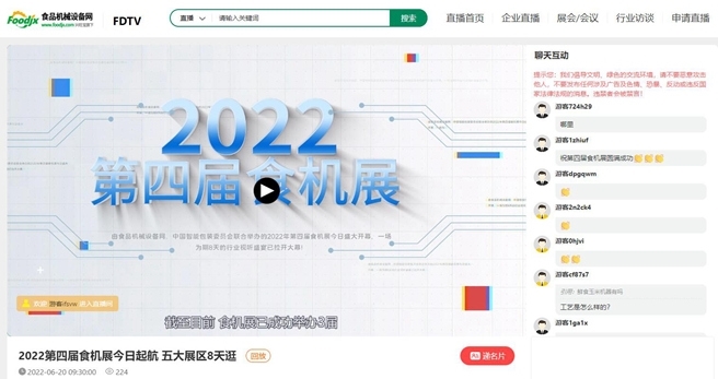 隨著“2022食機(jī)展”正式開幕,各家食品機(jī)械企業(yè)將紛紛開始一展身手。我們期待與您共赴這場(chǎng)“云上”行業(yè)盛會(huì),期待為您奉上精彩紛呈的“云上”展覽,期待助您達(dá)成圓滿的洽談與合作。