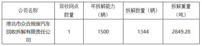 表8 2021年淮北市報(bào)廢機(jī)動(dòng)車拆解企業(yè)情況