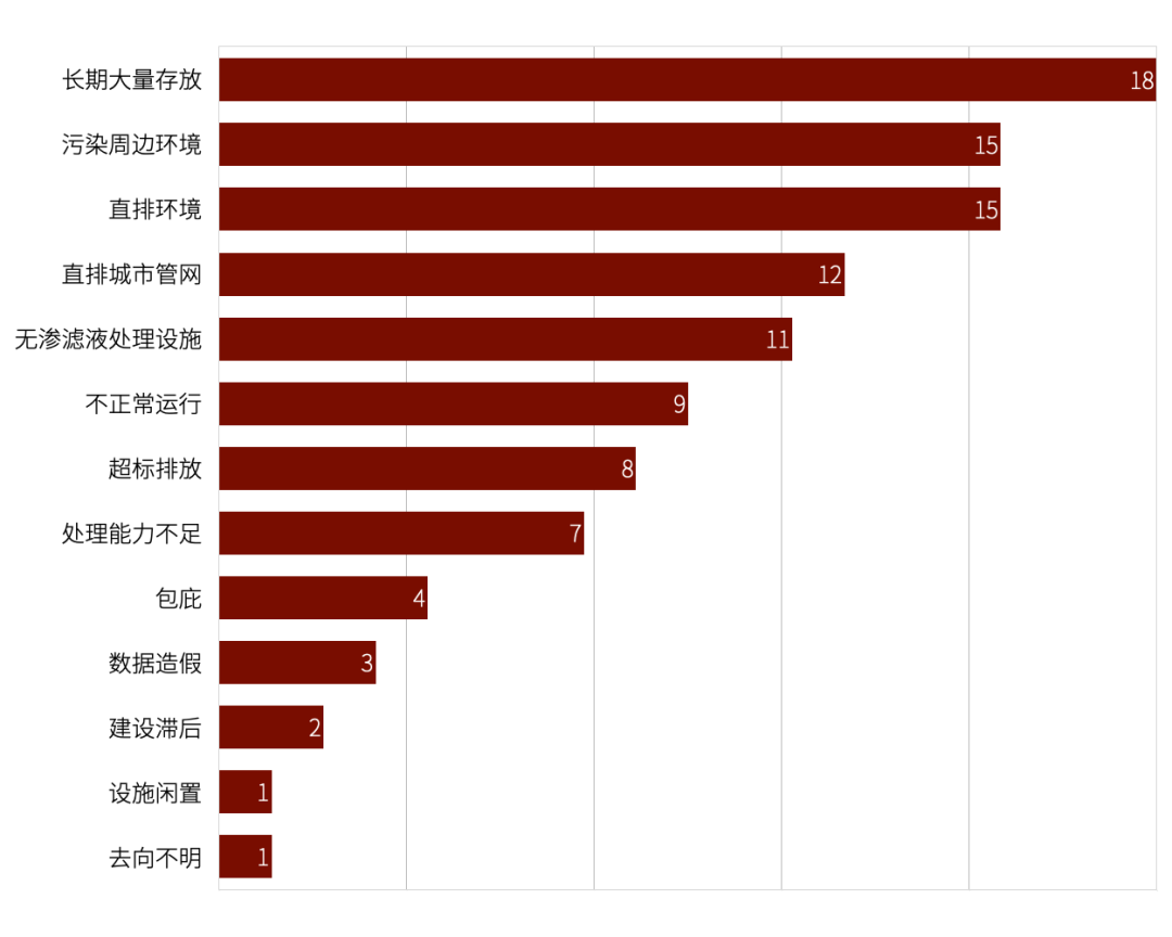 圖4.中央環(huán)保督察滲濾液違規(guī)處理中的具體問(wèn)題(2015-2022)