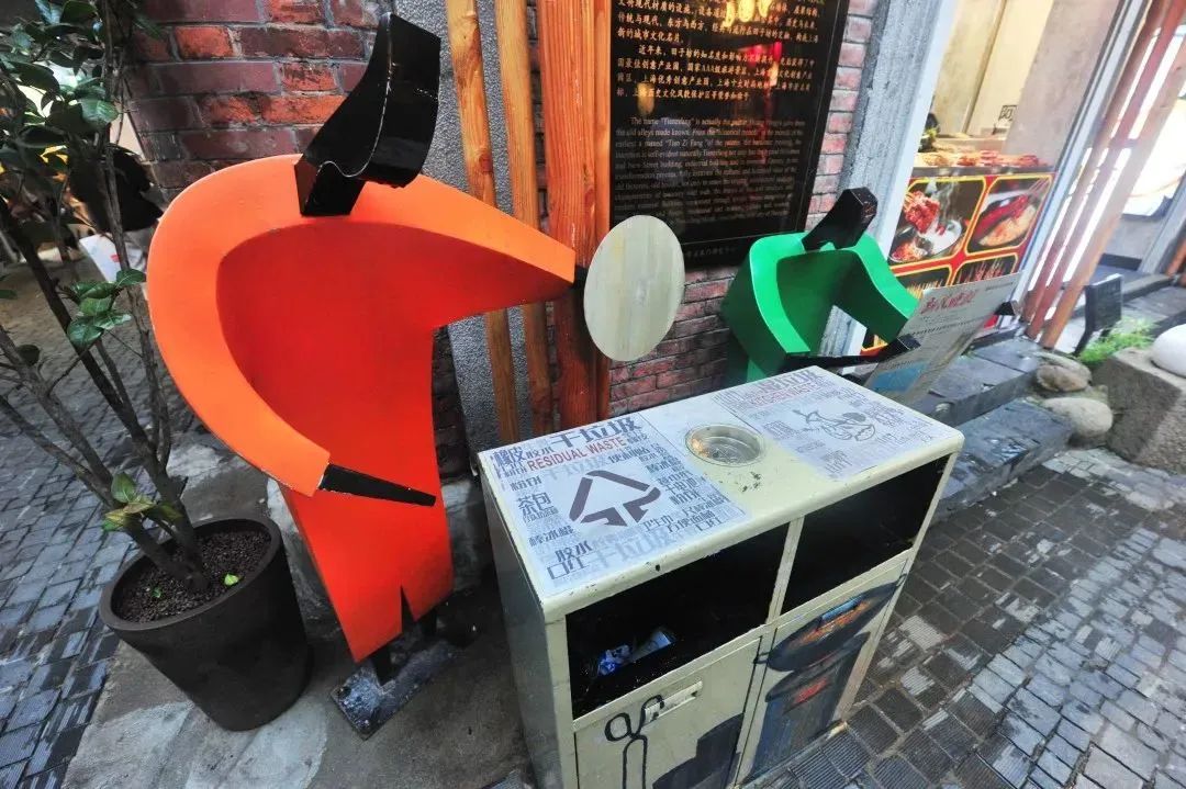 田子坊弄堂口形態(tài)雕塑引導(dǎo)“垃圾分類(lèi)”