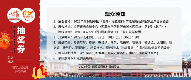2022年第26屆中國(guó)(西藏)綠色建材·節(jié)能暖通及舒適家居產(chǎn)品展覽會(huì)將于2022年7月28日-30日在拉薩飯店會(huì)議中心召開(kāi)。展會(huì)由西藏建筑裝飾協(xié)會(huì)聯(lián)手北京旺旅展覽展示有限公司傾力打造,西藏建筑業(yè)協(xié)會(huì)大力支持,共享五萬(wàn)寵大數(shù)據(jù)庫(kù)及新媒體資源,專(zhuān)業(yè)邀請(qǐng)經(jīng)銷(xiāo)、代理商、設(shè)計(jì)師與會(huì)洽談;實(shí)現(xiàn)資源共享,品牌聯(lián)盟,吸引眾多品牌積極參與,打造西藏建筑裝飾行業(yè)旗艦展會(huì)。