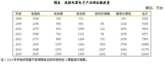 據(jù)了解,截止到2015年底,進入廢棄電器電子產(chǎn)品處理基金補貼名單的處理企業(yè)年處理能力超過1.5億臺,實際處理廢棄電器電子產(chǎn)品達到7500萬臺左右。