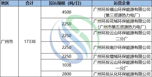 廣州垃圾焚燒投運(yùn)情況