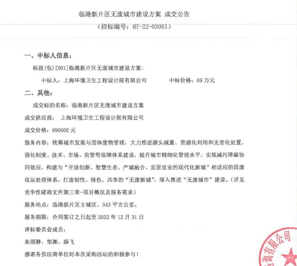 《臨港新片區(qū)無廢城市建設(shè)方案》成交公告