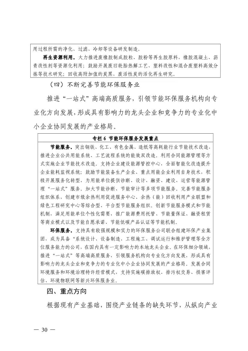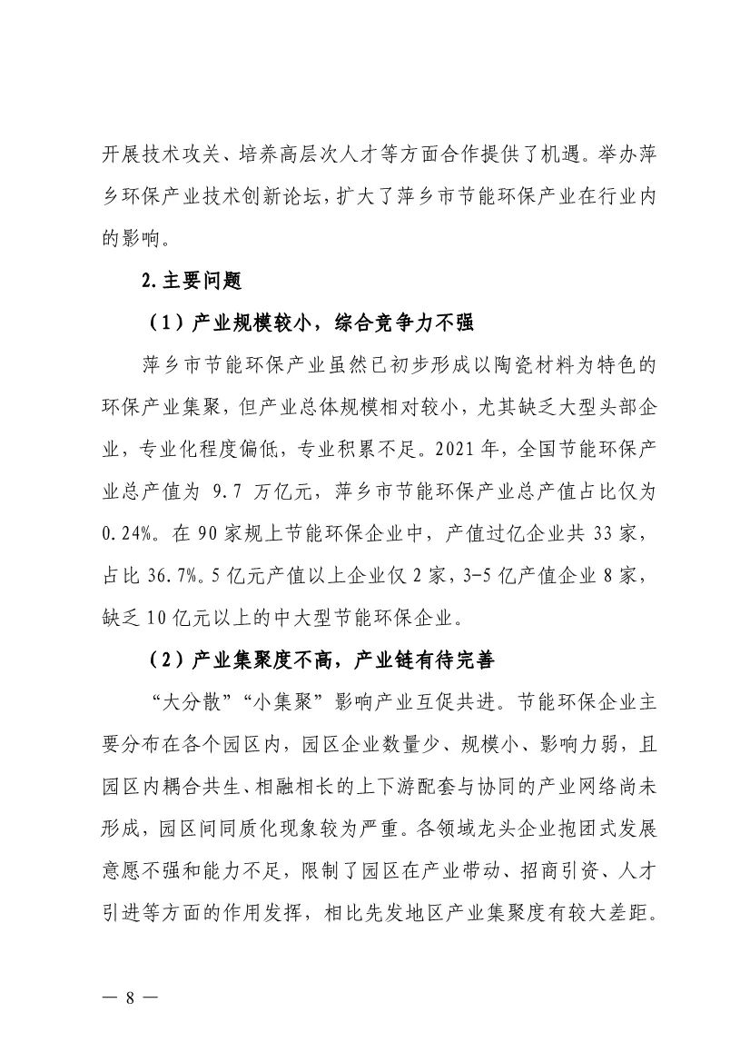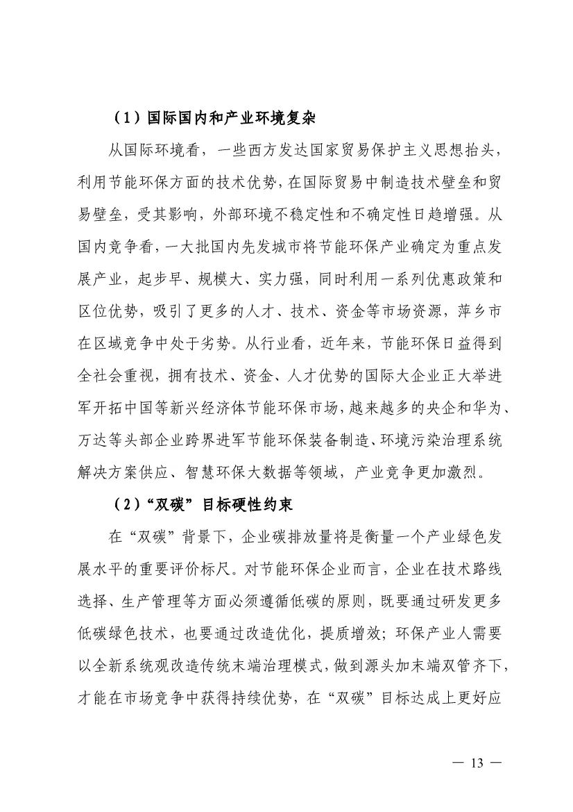 “十四五”期間,組建1-2個環(huán)保集團,以增強對國際先進技術裝備服務的承接能力,著力突破一批關鍵核心技術,強化集成應用示范,形成具有自主知識產(chǎn)權的整裝成套技術裝備,大幅提升節(jié)能環(huán)保技術和成套裝備本地化率,打造區(qū)域特色鮮明的湘東節(jié)能環(huán)保產(chǎn)業(yè)園。
