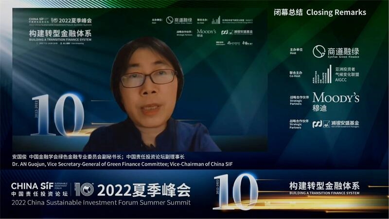 最后,中國金融學(xué)會綠色金融專業(yè)委員會副秘書長、China SIF副理事長安國俊博士做了總結(jié)發(fā)言。她指出,要充分發(fā)揮綠色金融和轉(zhuǎn)型金融的作用,首先要加強投資、金融、財稅等工具創(chuàng)新,激勵社會資本投入綠色低碳產(chǎn)業(yè)及轉(zhuǎn)型技術(shù)領(lǐng)域;完善綠色金融與綠色財政、產(chǎn)業(yè)政策協(xié)調(diào)發(fā)展的“1+N”政策體系,推進(jìn)綠色金融、轉(zhuǎn)型金融、可持續(xù)金融、氣候投融資、影響力協(xié)同發(fā)展。引導(dǎo)綠色基金ESG投資、資本向善的趨勢和體系的完善。同時也要逐步完善與轉(zhuǎn)型金融相關(guān)的行業(yè)標(biāo)準(zhǔn)、風(fēng)險定價機(jī)制等“基礎(chǔ)設(shè)施”框架的搭建,培育綠色基金、碳中和基金等綠色投資者,將資管產(chǎn)品創(chuàng)新與社會責(zé)任承擔(dān)有效協(xié)同,為雙碳目標(biāo)構(gòu)建我國綠色金融與轉(zhuǎn)型金融協(xié)同發(fā)展的體系。