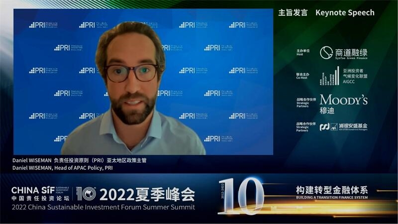 7月12日,由商道融綠主辦、亞洲投資者氣候變化聯(lián)盟(AIGCC)聯(lián)合主辦的2022年中國責(zé)任投資論壇(China SIF)夏季峰會在線上成功舉行。來自國內(nèi)外的政策制定者、標(biāo)準(zhǔn)制定者、資產(chǎn)所有者、資產(chǎn)管理者、中介機(jī)構(gòu)以及企業(yè)和學(xué)術(shù)界代表共聚一堂,圍繞“構(gòu)建轉(zhuǎn)型金融體系”展開深入討論。