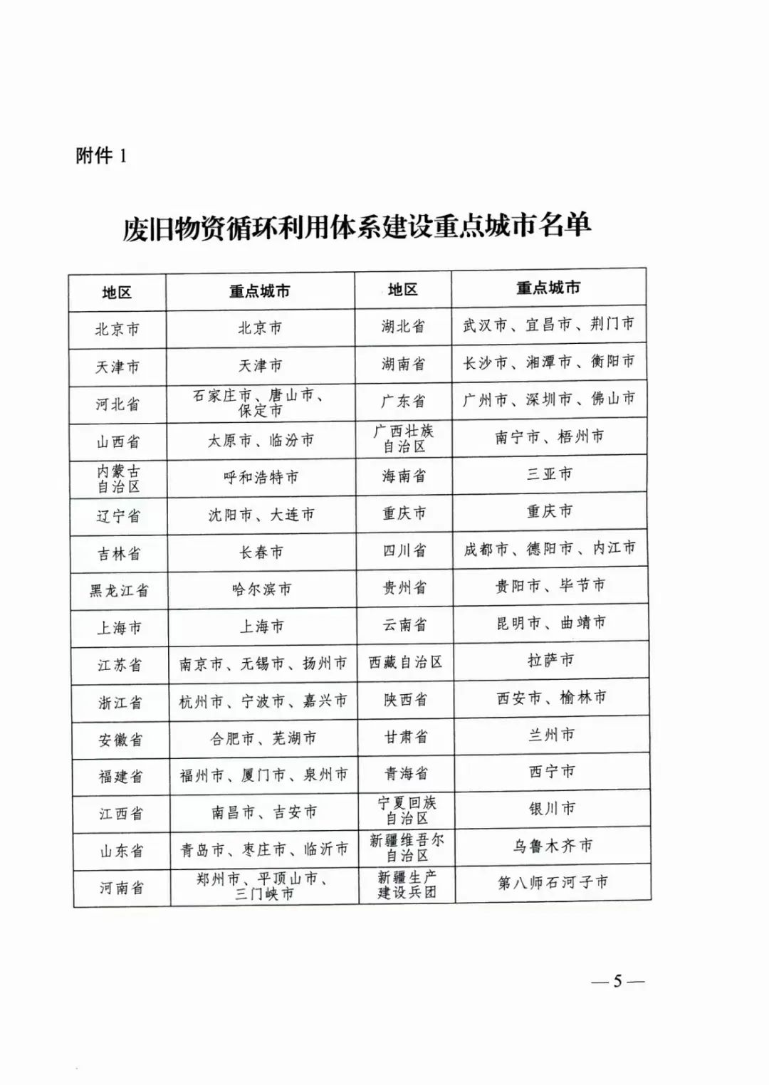 國家發(fā)展改革委辦公廳等:廢舊物資循環(huán)利用體系建設(shè)重點城市名單的通知