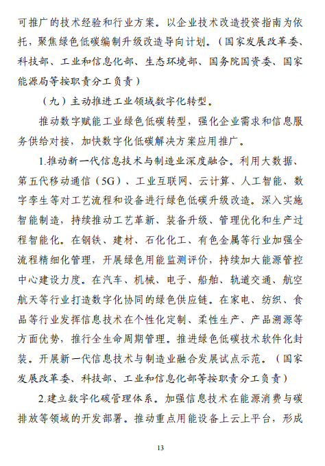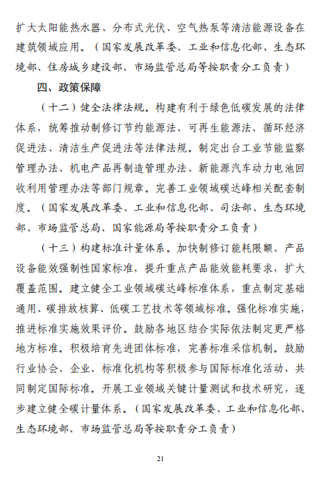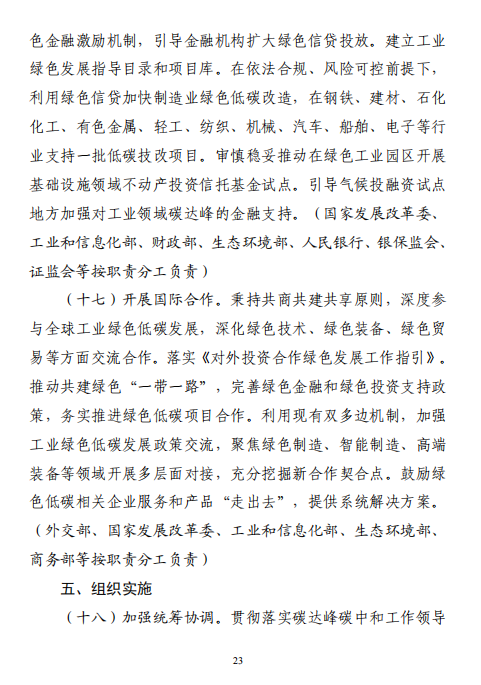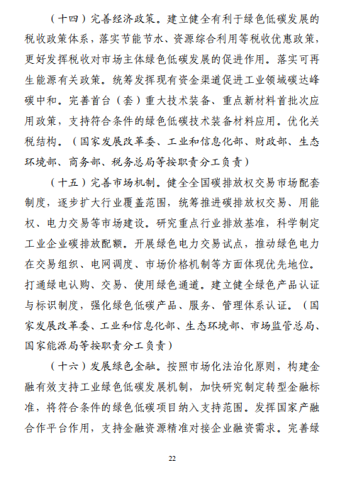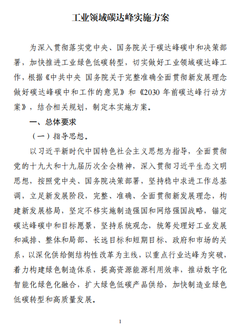 工業(yè)和信息化部 國家發(fā)展改革委 生態(tài)環(huán)境部關(guān)于印發(fā)工業(yè)領(lǐng)域碳達(dá)峰實(shí)施方案的通知工信部聯(lián)節(jié)〔2022〕88號(hào)外交部、科技部、司法部、財(cái)政部、住房城鄉(xiāng)建設(shè)部、交通運(yùn)輸部、商務(wù)部、人民銀行、國資委、稅務(wù)總局、市場(chǎng)監(jiān)管總局、統(tǒng)計(jì)局、銀保監(jiān)會(huì)、證監(jiān)會(huì)、能源局、林草局、郵政局,各省、自治區(qū)、直轄市及計(jì)劃單列市、新疆生產(chǎn)建設(shè)兵團(tuán)工業(yè)和信息化主管部門、發(fā)展改革委、生態(tài)環(huán)境廳(局):《工業(yè)領(lǐng)域碳達(dá)峰實(shí)施方案》已經(jīng)碳達(dá)峰碳中和工作領(lǐng)導(dǎo)小組審議通過,現(xiàn)印發(fā)給你們,請(qǐng)認(rèn)真貫徹落實(shí)。