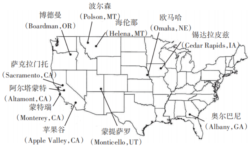 在對(duì)土質(zhì)覆蓋層進(jìn)行的現(xiàn)場(chǎng)試驗(yàn)研究中,最具代表性的項(xiàng)目當(dāng)屬US EPA資助的ACAP項(xiàng)目。該項(xiàng)目旨在評(píng)價(jià)替代型土質(zhì)覆蓋層的現(xiàn)場(chǎng)防滲性能,并為替代型土質(zhì)覆蓋層的設(shè)計(jì)、施工及后期維護(hù)提供必要的指導(dǎo)。ACAP項(xiàng)目于1998年啟動(dòng),先后在美國(guó)干旱、半干旱、半濕潤(rùn)及濕潤(rùn)地區(qū)的11個(gè)不同填埋場(chǎng)(圖7)建設(shè)了10個(gè)傳統(tǒng)阻斷型覆蓋層試驗(yàn)基地和14個(gè)替代型土質(zhì)覆蓋層現(xiàn)場(chǎng)試驗(yàn)基地。通過(guò)對(duì)試驗(yàn)基地的氣象條件、覆蓋層的徑流、側(cè)向?qū)?、土層存?chǔ)以及滲漏等指標(biāo)進(jìn)行長(zhǎng)達(dá)1~3 a的監(jiān)測(cè),獲得了各試驗(yàn)基地的水量平衡數(shù)據(jù),對(duì)比評(píng)估了替代型土質(zhì)覆蓋層的適用性。ACAP項(xiàng)目的結(jié)果表明:在北美的干旱、半干旱和半濕潤(rùn)地區(qū),單層騰發(fā)式覆蓋層與毛細(xì)阻滯覆蓋層的防滲效果與傳統(tǒng)阻斷型覆蓋層相當(dāng),而且二者能夠避免土體開(kāi)裂引發(fā)的大規(guī)模滲漏行為。由此得出,生態(tài)型土質(zhì)覆蓋層的防滲性能優(yōu)于傳統(tǒng)阻斷型覆蓋層。