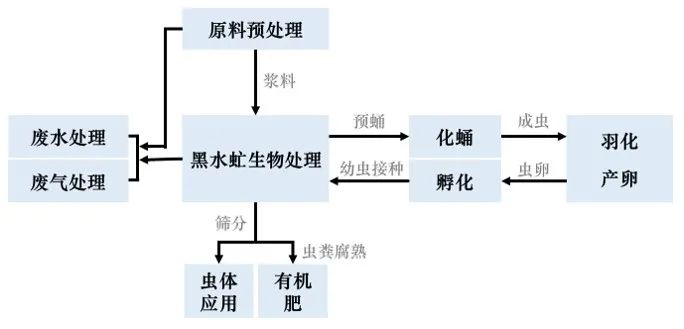 圖2 黑水虻生物轉(zhuǎn)化濕垃圾的基本工藝流程圖