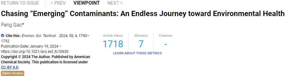 2024年01月19日美國(guó)匹茲堡大學(xué)助理教授高鵬博士以“Chasing “Emerging” Contaminants: An Endless Journey toward Environmental Health”為題在EST上發(fā)表了一篇Viewpoint,強(qiáng)調(diào)了關(guān)注新興污染物的同時(shí)也需要警惕遺留污染物,并提出了解決這些環(huán)境問(wèn)題的多種方法和途徑。以下是這篇文章的分享。
