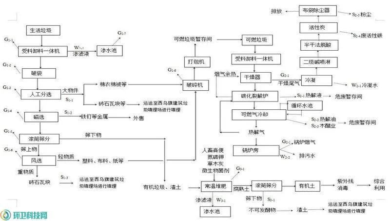 環(huán)境局網(wǎng)站上的公開資料顯示,這座生活垃圾處理項(xiàng)目位于西烏珠穆沁旗巴拉嘎爾高勒鎮(zhèn)西南側(cè)5.5km處,原計(jì)劃采用熱解工藝,主要建設(shè)一座“生活垃圾資源化處理廠及其附屬設(shè)施工程,購置生活垃圾處理設(shè)備”,建成后可日處理生活垃圾200噸,主要產(chǎn)品為碳化裂解爐熱解產(chǎn)生的熱解氣467.2萬m3/a和生活垃圾有機(jī)土(常溫)32850t/a。項(xiàng)目總投資6860萬元,資金來源為地方債券和上級專項(xiàng)資金。其中,環(huán)保投資398萬元,占總投資的5.80%。計(jì)劃于2020年8月開建,2021年12月投產(chǎn)。但至今,項(xiàng)目也只是進(jìn)行了場地平整,尚未建設(shè)投產(chǎn)。關(guān)于變更生活垃圾處理工藝的原因,環(huán)評文件表示,這是根據(jù)“EPC承包單位多年運(yùn)行經(jīng)驗(yàn)及項(xiàng)目區(qū)域生活垃圾成分復(fù)雜、水分含量高等特點(diǎn),高溫?zé)峤夤に嚿袩o法有效處理當(dāng)?shù)厣罾?,主要體現(xiàn)在熱解爐運(yùn)行不穩(wěn)定、排渣不順暢、產(chǎn)生的可燃?xì)怏w成分復(fù)雜、難以有效利用”。因此,建設(shè)單位根據(jù)需求及同類型企業(yè)實(shí)際生產(chǎn)情況,擬將原有生活垃圾熱解工藝變更為生活垃圾焚燒工藝并配套汽輪發(fā)電機(jī)組。變更后,項(xiàng)目將配置1臺200t/d機(jī)械爐排爐+1臺14t/h中溫低壓(400℃,2.5MPa)余熱鍋爐+1臺額定1.2MW的凝汽式汽輪機(jī)+1臺1.2MW發(fā)電機(jī),年運(yùn)行時(shí)間8000小時(shí),年平均發(fā)電量960×10^4kWh/a,所發(fā)電量全部用于廠內(nèi)自用。項(xiàng)目總投資仍為6860萬元,但環(huán)保投資增至872.05萬元,占總投資的12.71%。從2020年至今,時(shí)隔4年依舊未動(dòng)工,最終卻由EPC承包單位指出工藝不可行,那這個(gè)胎死腹中的“高溫?zé)峤狻表?xiàng)目究竟是一個(gè)什么樣的處理流程呢?環(huán)評文件顯示,變更之前,項(xiàng)目生活垃圾綜合利用處理系統(tǒng)由生活垃圾收運(yùn)系統(tǒng)、生活垃圾分選系統(tǒng)、可燃垃圾熱解系統(tǒng)和有機(jī)質(zhì)堆肥發(fā)酵系統(tǒng)四部分組成。其中的垃圾收運(yùn)、垃圾分選和垃圾堆肥基本沒什么好說,我們忽略,重點(diǎn)看垃圾熱解這個(gè)核心工藝。環(huán)評報(bào)告顯示,項(xiàng)目原計(jì)劃配置一臺碳化裂解爐,該碳化裂解爐可實(shí)現(xiàn)對含水量不超過30%、規(guī)格在50-100mm之間的物料進(jìn)行熱解氣化。生活垃圾碳化裂解系統(tǒng)主要包括:干燥脫水系統(tǒng)、碳化裂解系統(tǒng)、出料系統(tǒng)、熱解氣凈化和管網(wǎng)系統(tǒng),其中干燥脫水系統(tǒng)包括:干燥器上料機(jī)、干燥器、干物料儲倉等;碳化裂解系統(tǒng)包括:提斗式上料機(jī)、爐頂儲倉、密封裝置、螺旋進(jìn)料裝置、高溫密封裝置、反應(yīng)釜、爐體加熱裝置、爐內(nèi)攪拌裝置、攪拌高溫密封裝置、攪拌動(dòng)力裝置、爐內(nèi)余熱回收裝置等;出料系統(tǒng)包括:出料螺旋裝置、出料高溫密封裝置、熱解渣集中出料裝置、熱解氣出氣裝置等;熱解氣凈化和管網(wǎng)系統(tǒng)包括:熱解氣除塵裝置、熱解氣冷卻裝置、真空裝置、水氣分離裝置、木醋液與裂解油分離裝置等。根據(jù)廠家前期測試數(shù)據(jù),一噸可燃垃圾可產(chǎn)氣200m3,產(chǎn)渣30kg,產(chǎn)木醋液40kg,產(chǎn)焦油2kg,垃圾熱解率為3%。本裝置將物料一次性或連續(xù)性加入反應(yīng)釜內(nèi)進(jìn)行熱解氣化,生成可燃?xì)怏w為混合氣體,主要含有一氧化碳、氫氣、甲烷等。在反應(yīng)釜內(nèi)由上向下通過羅茨鼓風(fēng)機(jī)將氣體輸送至管網(wǎng)。鑒于生物質(zhì)氣所含的主要雜質(zhì)是焦油和灰塵,本項(xiàng)目采用“旋風(fēng)除塵器”、“熱交換器”、“氣液分離器”等對熱解氣進(jìn)行凈化處理,除掉灰塵和焦油等物質(zhì)。基本生產(chǎn)流程是:可燃垃圾→干燥脫水→碳化裂解→旋風(fēng)除塵→冷卻→氣液分離→阻火→管網(wǎng)→阻火→供氣。熱解產(chǎn)生的熱解氣中約1/3直接用作碳化裂解爐作燃料,剩余約2/3通過地下輸配系統(tǒng)輸送到各用氣設(shè)備,多余燃?xì)膺M(jìn)入火炬燃燒系統(tǒng)。變更前項(xiàng)目生活垃圾處理工程工藝流程如圖1。自從2022年12月,國家發(fā)改委、住建部、生態(tài)環(huán)境部等五部委聯(lián)合印發(fā)《關(guān)于加強(qiáng)縣級地區(qū)生活垃圾焚燒處理設(shè)施建設(shè)的指導(dǎo)意見》,明確要求“以中西部和東北地區(qū)、邊境地區(qū)為重點(diǎn),選取人口密度較低、垃圾產(chǎn)生量較少的部分縣級地區(qū)積極開展小型焚燒試點(diǎn)”之后,國內(nèi)一度出現(xiàn)一股使用熱解工藝的“小型垃圾焚燒項(xiàng)目”,但對此工藝的爭議卻一直頗多,焦點(diǎn)就在于熱解到底是否適于處理生活垃圾?熱解,作為一個(gè)誕生于19世紀(jì)的技術(shù),最初是用于煤化工,缺乏油氣資源的德國人采用熱解工藝處理煤炭,獲取燃油、燃?xì)獾犬a(chǎn)品。后來,人們在處理廢舊塑料、廢輪胎等橡膠制品、醫(yī)療廢物及農(nóng)林生物質(zhì)等固廢時(shí),也采用了熱解技術(shù),效果良好。于是又試圖將熱解技術(shù)引入生活垃圾處理領(lǐng)域,但卻遇到了麻煩,因?yàn)椤吧罾边@個(gè)特殊物料遠(yuǎn)沒有煤、廢塑料、橡膠那么“單純”。一是生活垃圾含