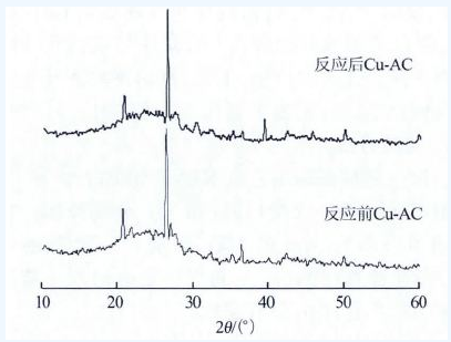 利用X 射線衍射儀對反應前后Cu-AC 的結構進行分析,結果見圖 3。