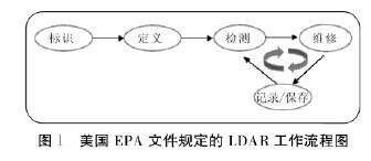 美國EPA文件《泄漏檢測與修復(fù):最佳技術(shù)指南》指出,較為成熟的LDAR作業(yè)步驟可總結(jié)為圖1所示的5個(gè)工作流程,包括泄漏點(diǎn)定位、定義泄漏濃度、檢測組件、修復(fù)泄漏組件以及記錄保存。