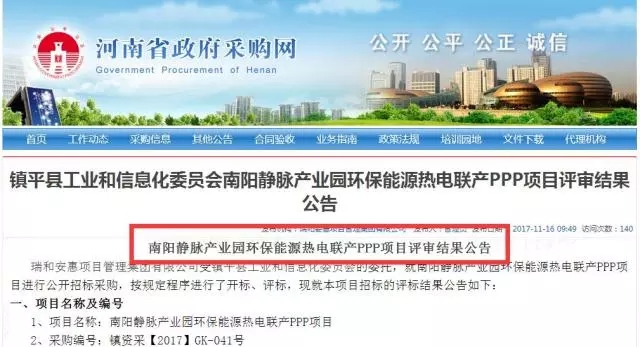 河南省政府采購網(wǎng)16日發(fā)布南陽靜脈產(chǎn)業(yè)園環(huán)保能源熱電聯(lián)產(chǎn)PPP項目評審結(jié)果公告,第一中標(biāo)候選人為上??岛悱h(huán)境股份有限公司。