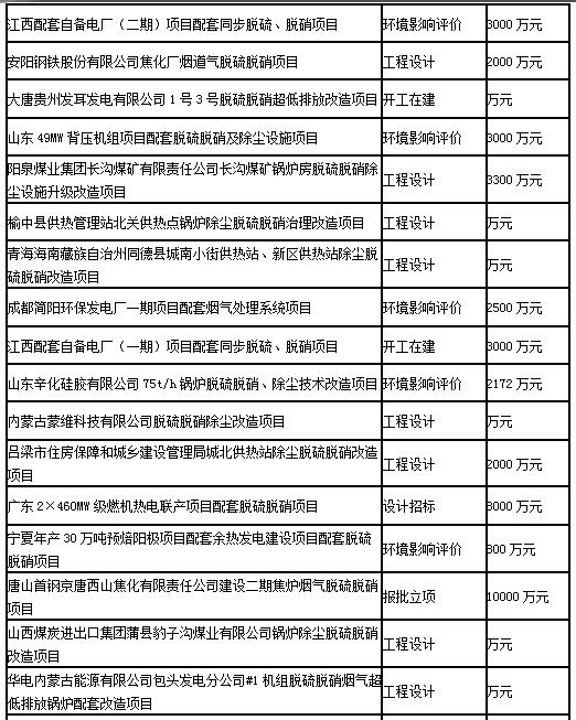 2017年11月份全國(guó)擬在脫硫脫硝、水處理項(xiàng)目匯總,涉及脫硫脫硝、煙氣處理等環(huán)保項(xiàng)目。