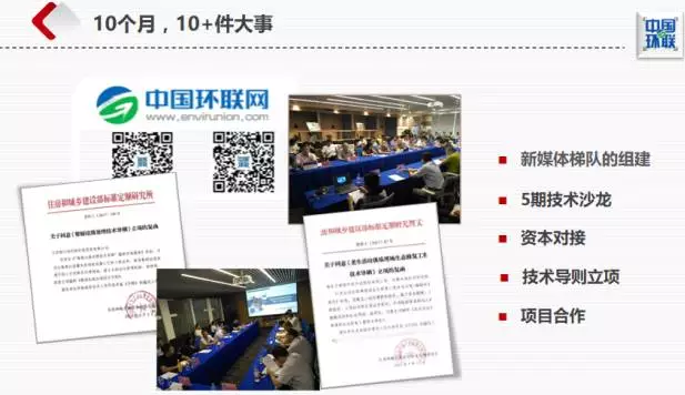 10個月來,我們?yōu)橥苿迎h(huán)保領(lǐng)域產(chǎn)業(yè)整合,成立了“中國環(huán)聯(lián)綠色金融專委會”,以及“中國環(huán)聯(lián)成長基金”和“中國環(huán)聯(lián)并購基金”;