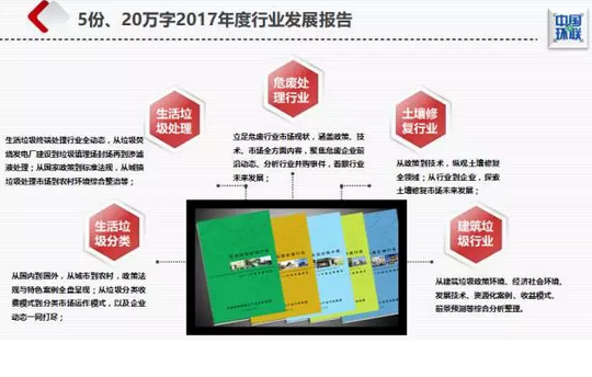 生活垃圾處理行業(yè)2017年度發(fā)展報告:該報告囊括生活垃圾終端處理行業(yè)動態(tài),從垃圾焚燒發(fā)電廠到垃圾填埋場封場處理;從國家政策到標準法規(guī),從城鎮(zhèn)垃圾處理市場到農(nóng)村環(huán)境綜合整治等;