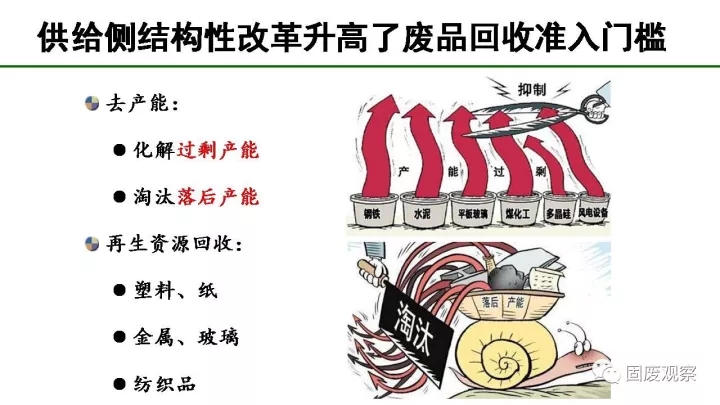 短缺經(jīng)濟(jì)時代與過剩經(jīng)濟(jì)時代,自力更生時代與全球化時代,環(huán)境容量大的時代與環(huán)境容量小的時代,分類回收策略不同。我們目前廢品回收行業(yè)大多只能生產(chǎn)低端產(chǎn)品,但市場越來越小了。相當(dāng)一批廢品回收企業(yè)屬“散亂污”,以污染環(huán)境為代價維持生產(chǎn)獲取利潤。在此輪環(huán)保督察中,大批廢品回收利用企業(yè)因環(huán)保不達(dá)標(biāo)或無污染防止設(shè)施被關(guān)停。