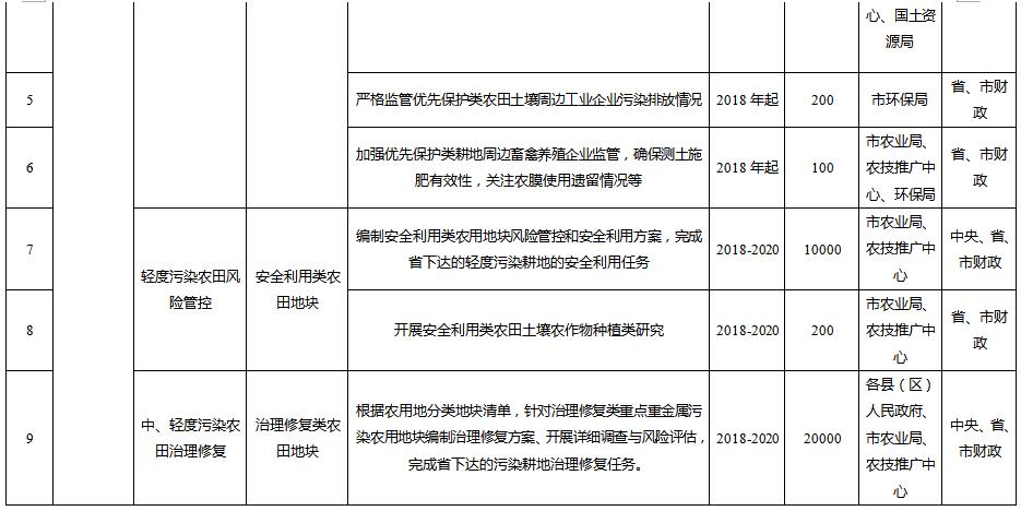 到2020年,受污染耕地安全利用率達到90%左右,污染地塊安全利用率達到90%以上,完成省級下達的污染耕地、污染地塊安全利用或治理修復任務。