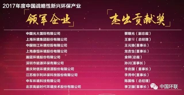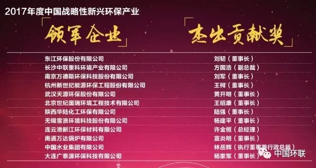2017年度中國戰(zhàn)略性新興環(huán)保產業(yè)領軍企業(yè)與杰出貢獻獎