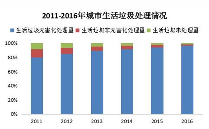 而在35%的要求之下,還存在著相當高的生活垃圾處理率:《2017年全國大、中城市固體廢物污染環(huán)境防治年報》顯示,2016年,我國214個大、中型城市生活垃圾處理率達99.1%;《2016年城鄉(xiāng)建設統(tǒng)計公報》顯示,到2016年末,全國城市生活垃圾無害化處理率96.62%。