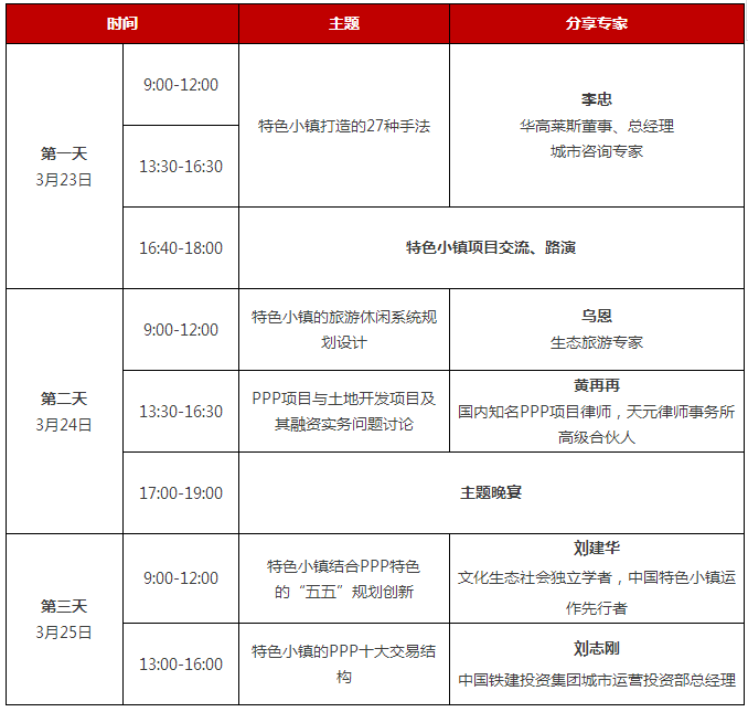 政策解讀、文旅特色小鎮(zhèn)實(shí)踐分享、投融資策劃與方案分析、特色小鎮(zhèn)投資運(yùn)營(yíng)創(chuàng)新模式和產(chǎn)業(yè)生態(tài)圈構(gòu)建、如何利用文化遺產(chǎn)建設(shè)特色小鎮(zhèn)