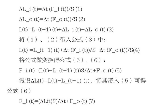 我們假設(shè)t時(shí)刻來(lái)水流量為Fi(t),集水池的液位就為L(zhǎng)(t),S為集水池的底面積,膜進(jìn)水量Fo(t),ΔL_i(t)為來(lái)水液位增量,L_(t-1)(t)為t-1時(shí)的液位,ΔL_o(t)為超濾系統(tǒng)處理產(chǎn)量對(duì)業(yè)務(wù)液位增量。可得知: