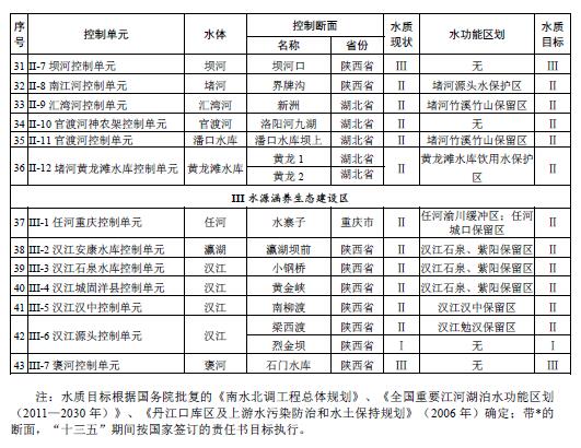 丹江口水庫和中線取水口水質(zhì)穩(wěn)定并保持Ⅱ類,庫區(qū)總氮濃度不劣于現(xiàn)狀水平;到2020年,漢江和丹江干流斷面水質(zhì)為Ⅱ類,其它直接匯入丹江口水庫的主要河流水質(zhì)達到水功能區(qū)水質(zhì)目標。