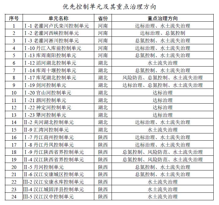 對43個控制單元逐一核定面積、水資源、污染源、人口、耕地、水土流失等情況,將未達到或未穩(wěn)定達到水質(zhì)目標、總氮濃度高、水土流失較重、環(huán)境風險較高的24個控制單元作為優(yōu)先控制單元,明確治理方向和治理任務,加大治理力度。其中,達標治理類11個,水土流失治理類19個,總氮控制類10個,風險防范類3個(部分優(yōu)先控制單元涉及多個重點治理方向)。