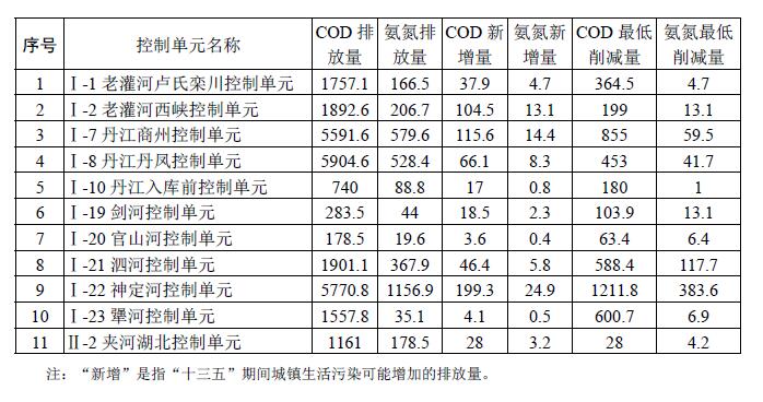 水質(zhì)不達標或不穩(wěn)定達標的11個優(yōu)先控制單元,“十三五”期間,污染物排放量削減不得低于下表要求,實現(xiàn)治理達標。達標治理優(yōu)先控制單元污染物削減任務表(單位:噸/年)