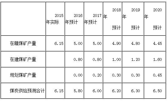 表2—3 “十三五”煤炭產(chǎn)量預(yù)測(cè)表