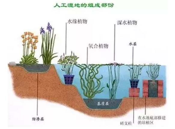 人工濕地選擇的植物必須適應當地的土壤和氣候條件,各種濕地植物對不同污染物的去除效果各有差異,多種植物組合使用時,植物之間取長補短,可提高濕地系統的污水凈化效率。