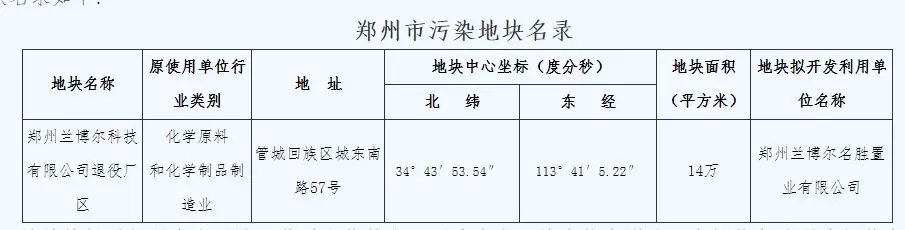 2017年12月11日 重慶市環(huán)境保護局公布了《鄭州市污染地塊名錄及其開發(fā)利用負(fù)面清單公告》,共有1塊污染地塊。