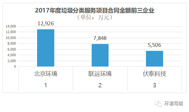 2017年度全國共有來自19個省份、54個地級城市的137個區(qū)縣發(fā)布各類垃圾分類服務(wù)試點項目,項目及標段總量為345個,合同總金額9.19億元。