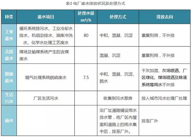 本公司2×300MW機(jī)組排汽冷卻采用直接空冷系統(tǒng),廠區(qū)排水采用生活污水、工業(yè)廢水、雨水完全分流制排水系統(tǒng):工業(yè)廢水處理系統(tǒng)、生活污水排水系統(tǒng)、雨水排水系統(tǒng)、含煤廢水、脫硫廢水處理系統(tǒng)。