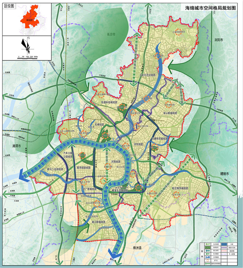 近期建設(shè)區(qū)域包括:新馬工業(yè)園、武廣新城、天易科技城、軌道科技城、金山新城、航空服飾城、楓溪生態(tài)城、云龍示范區(qū)等各類園區(qū)和城市新區(qū);清水塘片區(qū)、河?xùn)|中心片區(qū)等老城區(qū)。