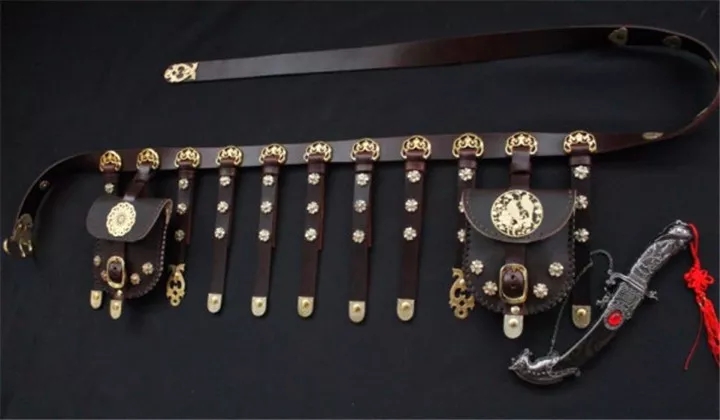 《新唐書(shū)》中有關(guān)于服裝形制的記載,唐人常配有一種叫蹀躞(dié xiè)七事的腰帶,上面掛著七種不同用處的物件,哪七種?分別為:佩刀、刀子、礪石、契苾真、噦厥、針筒、火石。這個(gè)噦厥(yuě jué),就是我們生活中常見(jiàn)的垃圾袋。