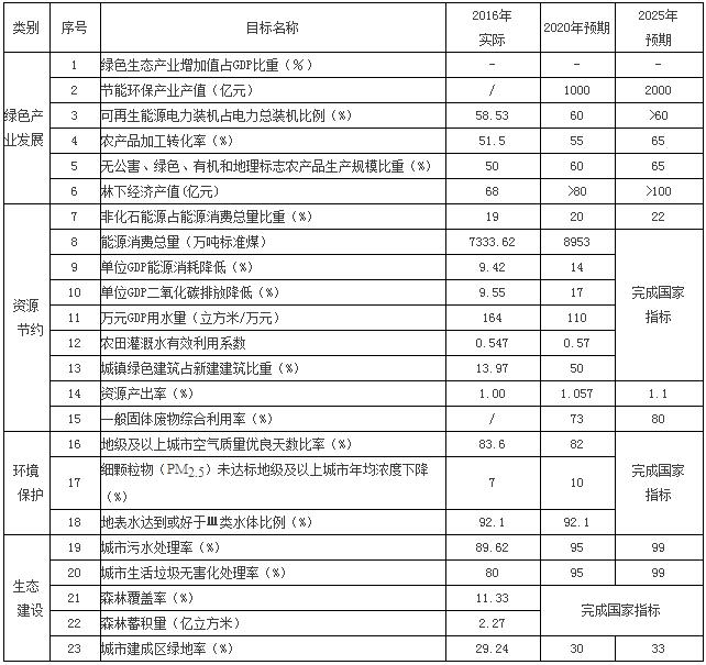 到2020年,產(chǎn)業(yè)結構調整取得較大進展,生態(tài)文明體制改革取得重大突破,生態(tài)產(chǎn)業(yè)體系初步形成;到2025年,生態(tài)產(chǎn)業(yè)體系進一步完善,生態(tài)環(huán)境質量明顯改善,清潔生產(chǎn)、高效生產(chǎn)、低碳生產(chǎn)占主導地位,為建設綠色低碳循環(huán)發(fā)展的經(jīng)濟體系奠定堅實基礎。經(jīng)過5-8年的發(fā)展,清潔生產(chǎn)產(chǎn)業(yè)初具規(guī)模,傳統(tǒng)產(chǎn)業(yè)綠色發(fā)展水平和質量效益顯著提高;節(jié)能環(huán)保、清潔能源、中醫(yī)中藥、文化旅游、通道物流、數(shù)據(jù)信息、軍民融合、先進制造等新興產(chǎn)業(yè)發(fā)展壯大,成為全省經(jīng)濟的重要增長極;循環(huán)農(nóng)業(yè)優(yōu)勢彰顯、打響綠色生態(tài)品牌,建成綠色生態(tài)農(nóng)產(chǎn)品生產(chǎn)加工基地,構建市場潛能大、布局合理、功能完備的生態(tài)產(chǎn)業(yè)體系,綠色發(fā)展能力顯著增強,形成綠色生態(tài)產(chǎn)業(yè)發(fā)達、生態(tài)環(huán)境質量優(yōu)良、社會經(jīng)濟和資源環(huán)境統(tǒng)籌協(xié)調的發(fā)展格局。