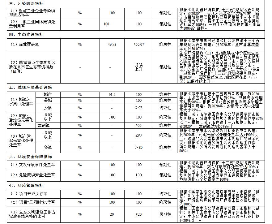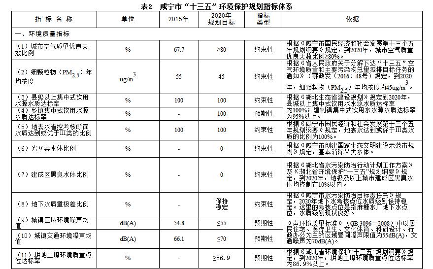 根據(jù)國家、省環(huán)境保護“十三五”規(guī)劃相關要求,結(jié)合咸寧實際情況,“十三五”期間環(huán)保規(guī)劃指標如下。