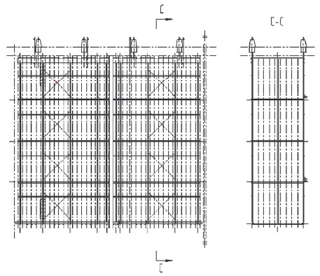 (2)內(nèi)頂蓋、外頂蓋相應位置開孔,以適應新增的陰極吊掛和陰極振打裝置,并在相應位置焊接型鋼以增加強度;