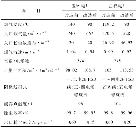 表1 玉環(huán)電廠與左權電廠電除塵器改造前后參數(shù)