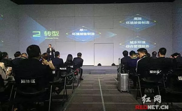 ▲中聯(lián)環(huán)境執(zhí)行總裁陳培亮闡述兩個戰(zhàn)略轉(zhuǎn)型