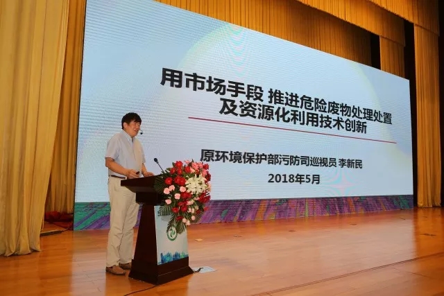 原國家環(huán)境保護(hù)部巡視員李新民以“用市場手段推進(jìn)危廢綜合利用及資源化創(chuàng)新”為主題,從全國生態(tài)環(huán)境保護(hù)大會、固體(危險)廢物環(huán)境管理基本情況以及《環(huán)境保護(hù)稅法》三個方面進(jìn)行詳細(xì)介紹。李司長指出“5.19全國生態(tài)環(huán)境保護(hù)大會”確定了我國全面建設(shè)小康社會的時間表和路線圖,環(huán)境治理和環(huán)境發(fā)展成為關(guān)系民生的重大社會問題。目前,固體(危險)廢物利用處置行業(yè)在無害化處置、資源化利用、新技術(shù)新裝備三方面快速發(fā)展。李司長從基本信息、發(fā)展階段、藍(lán)海市場三個方面詳細(xì)分析了行業(yè)管理基本情況,并從合規(guī)及監(jiān)管兩方面提出了行業(yè)展望。