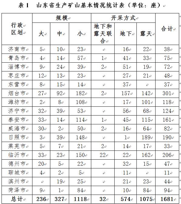 截至2017年,全省已發(fā)現(xiàn)礦產(chǎn)148種,查明資源儲量的有85種。其中,煤、石油、天然氣、地?zé)岬饶茉吹V產(chǎn)7種,金、鐵、銅等金屬礦產(chǎn)25種,石灰?guī)r、花崗巖、石墨、石膏、滑石等非金屬礦產(chǎn)50種,地下水、礦泉水等水汽礦產(chǎn)3種。全省開發(fā)利用礦產(chǎn)60余種(含亞礦種),主要開采礦種為石油、煤、金、鐵、石灰?guī)r、花崗巖等,全省共有各類生產(chǎn)礦山1681座(包括62座在建礦山)(表1),歷史遺留礦山(包括廢棄、政策性關(guān)閉及閉坑礦山)7991座(表2)。