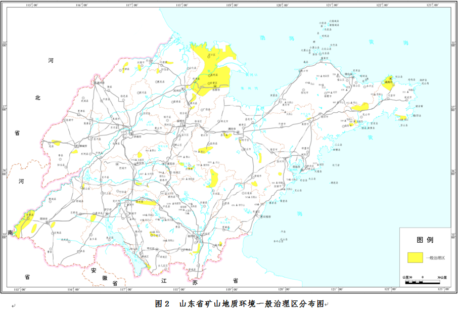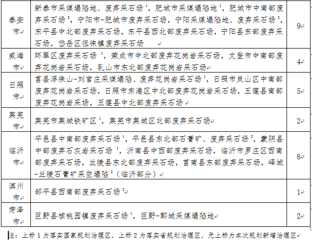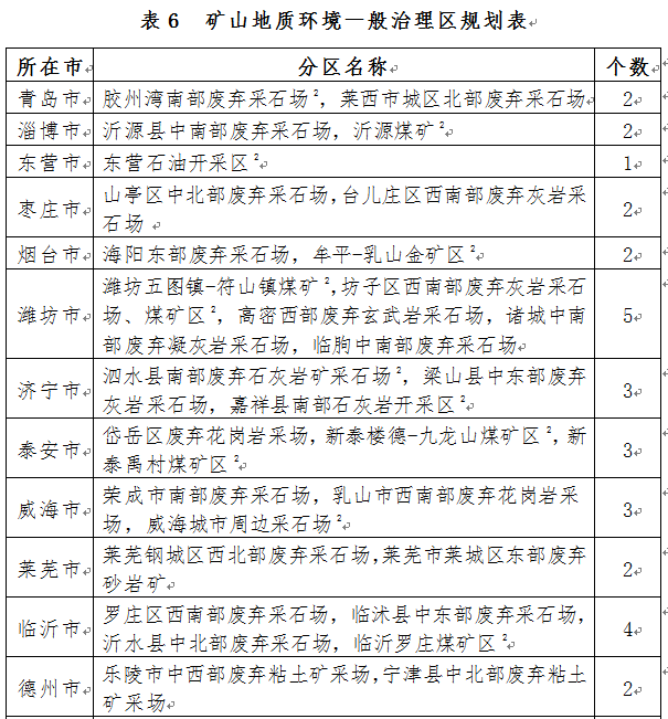 根據(jù)山東省礦山地質(zhì)環(huán)境調(diào)查最新成果,結(jié)合《全國礦產(chǎn)資源規(guī)劃》《山東省礦產(chǎn)資源總體規(guī)劃》中有關(guān)礦山地質(zhì)環(huán)境治理分區(qū)結(jié)果,充分考慮重點(diǎn)礦山地質(zhì)環(huán)境問題發(fā)育現(xiàn)狀和影響范圍,劃分礦山地質(zhì)環(huán)境重點(diǎn)治理區(qū)和一般治理區(qū)。